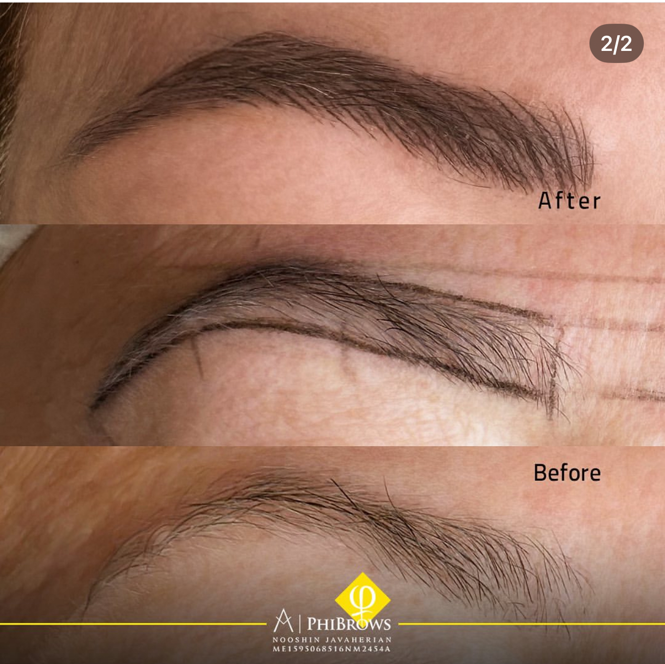 At consultation, Nooshin measured facial symmetry and mapped a pre-design so the client could visualize the final look before any microblading started. They agreed on:
